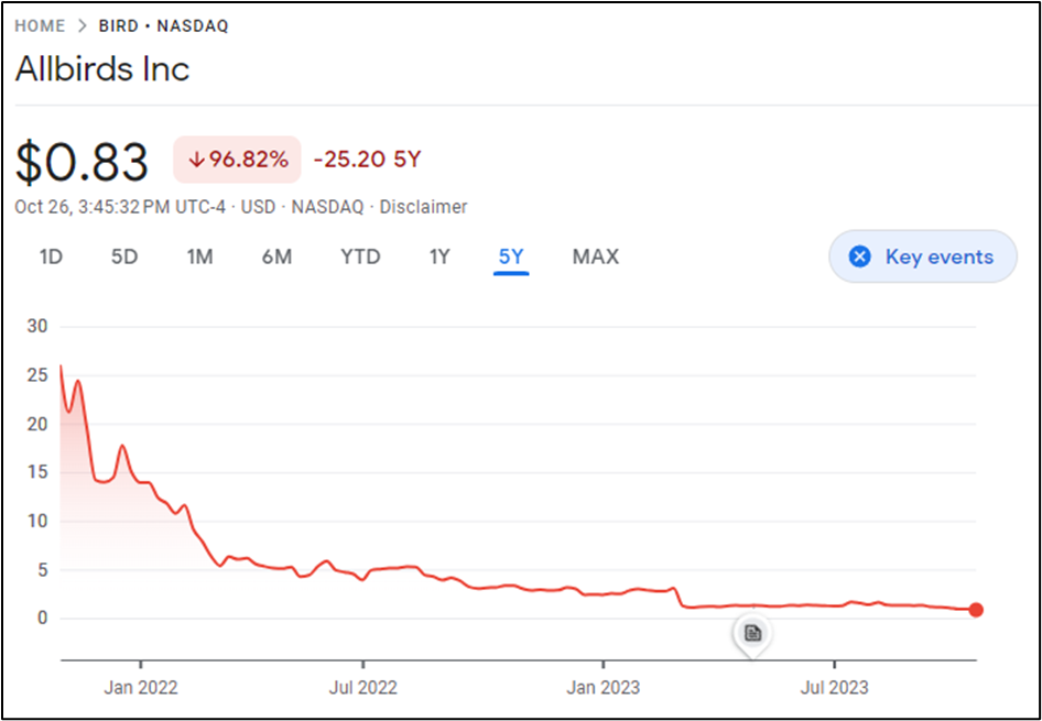 Image 1: Graph depicting Allbirds’ dramatic stock rise and subsequent fall.